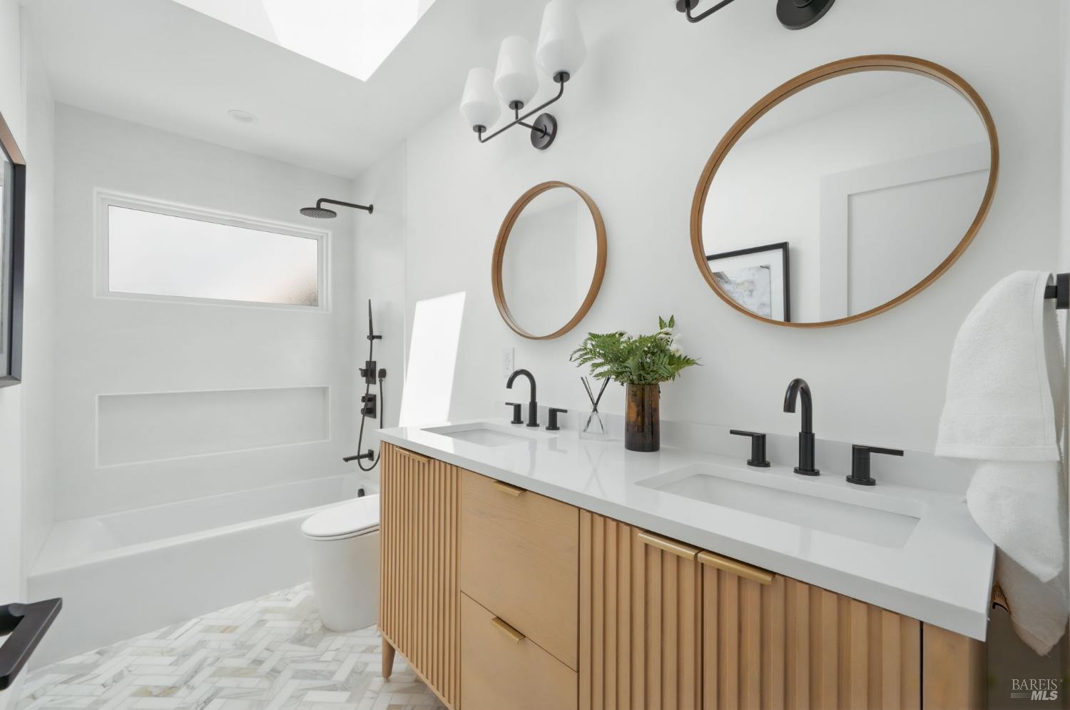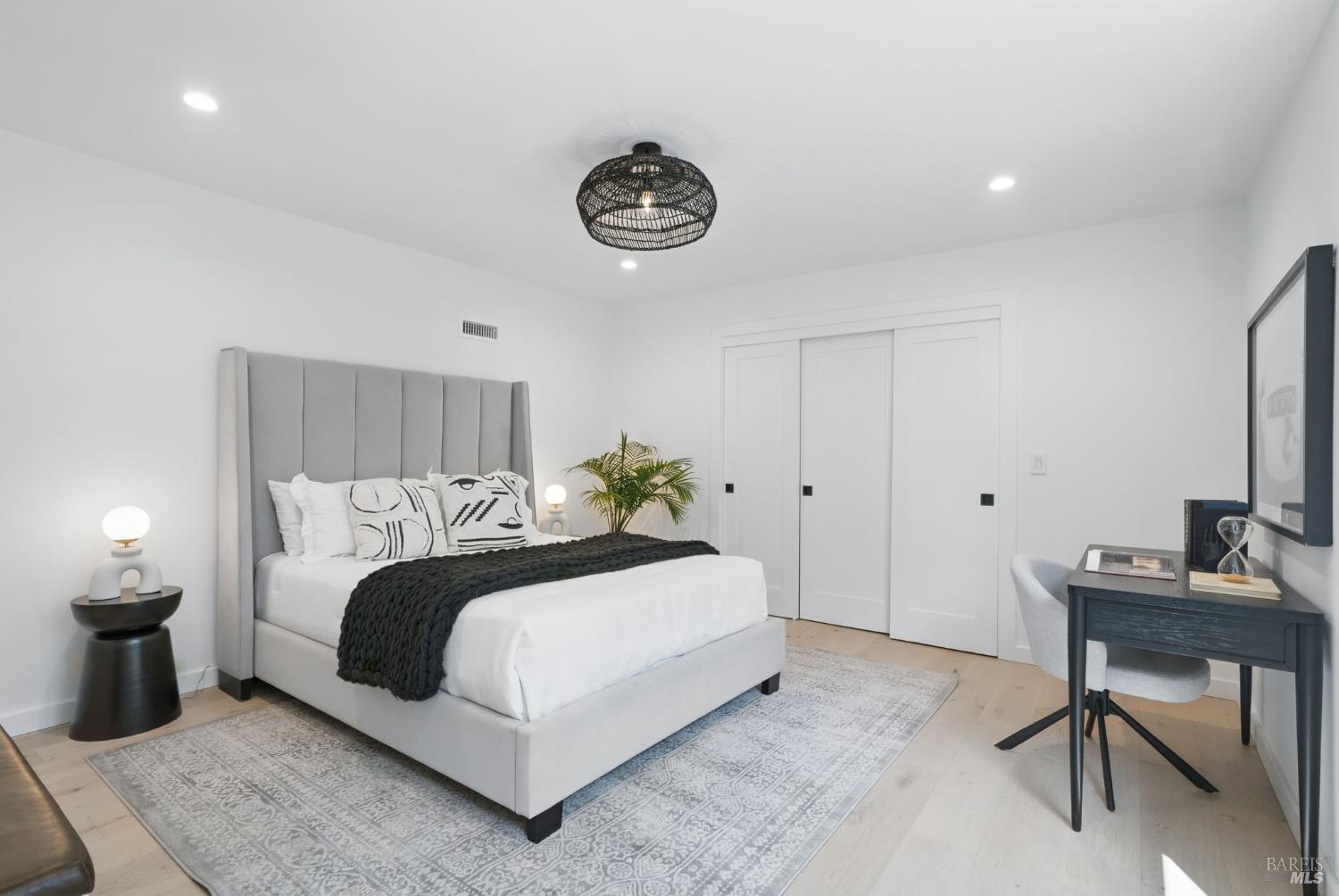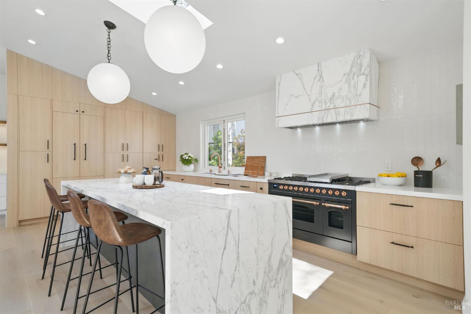 Experience luxury living at 21 Sheridan Court in Mill Valley's prestigious Country Club neighborhood. This reimagined 5-bedroom, 3-bathroom home spans 2,855 square feet, offering modern elegance and high design. The light-filled main living area and deck provide breathtaking views and seamless entertaining from the open living room and kitchen. The minimalist design features natural elements like terracotta, ceramics, marble, and wood. The chef's kitchen is equipped with premium appliances, an Ilve custom range, and a magnificent Calacatta Medici marble island. High-end finishes include lighting from Restoration Hardware, Anthropologie, and Room and Board. The primary suite and two bedrooms are on the main level, with two more bedrooms and a full bath downstairs. Located on a cul-de-sac, enjoy easy access to town with pathways. The deck is perfect for outdoor dining, and the yard offers access to a dog park and playground. Embrace a lifestyle of luxury, comfort, and convenience in this beautifully redeveloped home, perfect for modern living and entertaining.