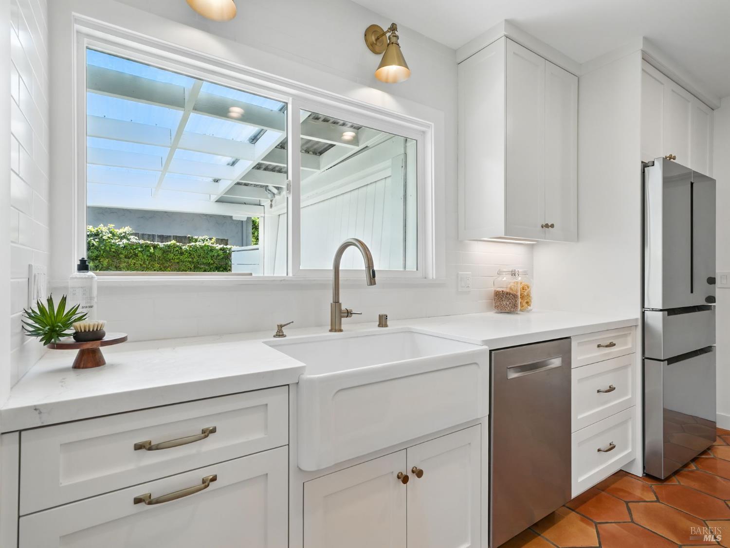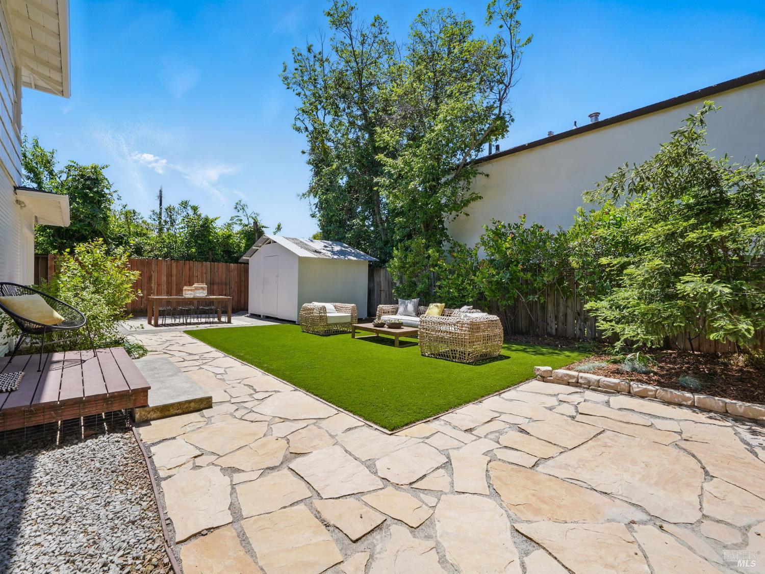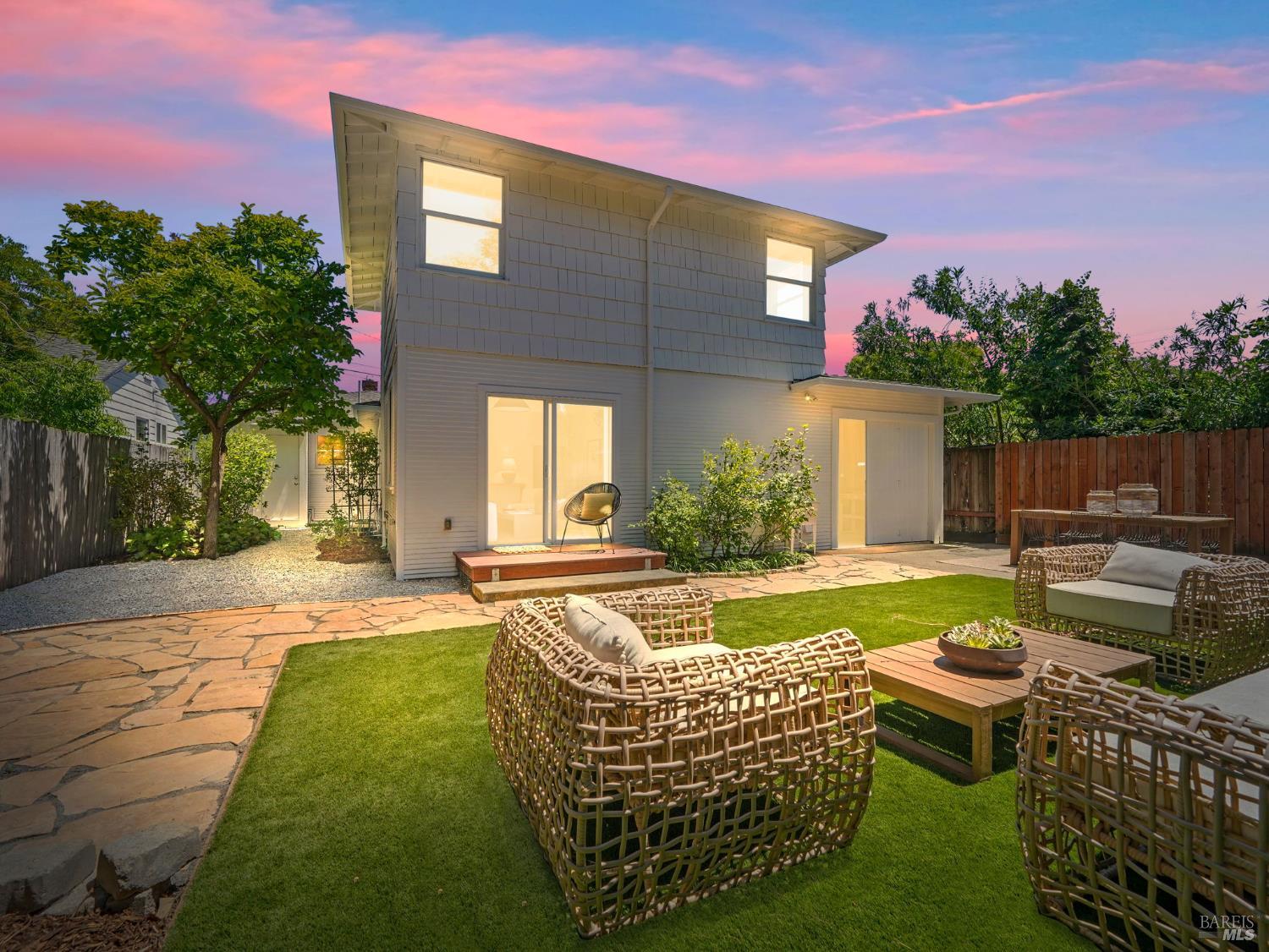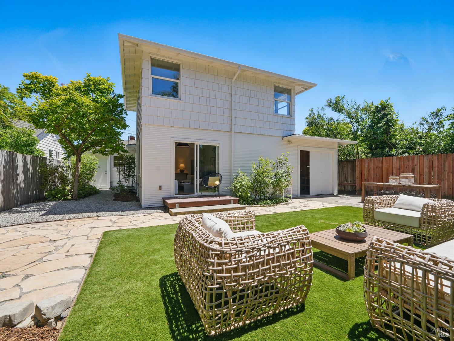Discover this elegantly remodeled 1925 vintage charmer in San Rafael's desirable Outer Dominican neighborhood. This farmhouse-style home, infused with Spanish influences, offers historic charm and modern luxury across 1,655 square feet of thoughtfully designed space. It features 4 bedrooms and 2 beautifully renovated bathrooms. Period details captivate throughout. The updated kitchen boasts high-end finishes and authentic terracotta Spanish tiles, echoed in the cohesive bathroom designs. The main level flows from the kitchen to dining and living areas, with a separate family room, two bedrooms, and a bath. Upstairs, find the primary and another bedroom with a full bath. Your private oasis awaits with sunny front and back yards featuring native California landscaping, eliminating irrigation needs. The fully fenced backyard provides a serene retreat, while the front porch features custom encaustic cement tiles and a new picket railing. Additional features include a single-car garage, ample parking, all-new electrical systems, fresh paint, and designer lighting. Close to downtown San Rafael, this home blends nostalgic charm with contemporary elegance.