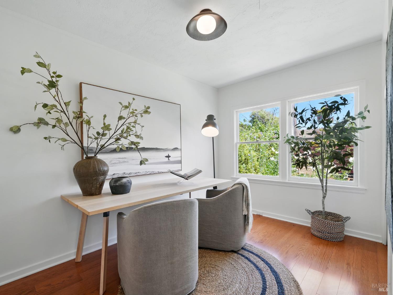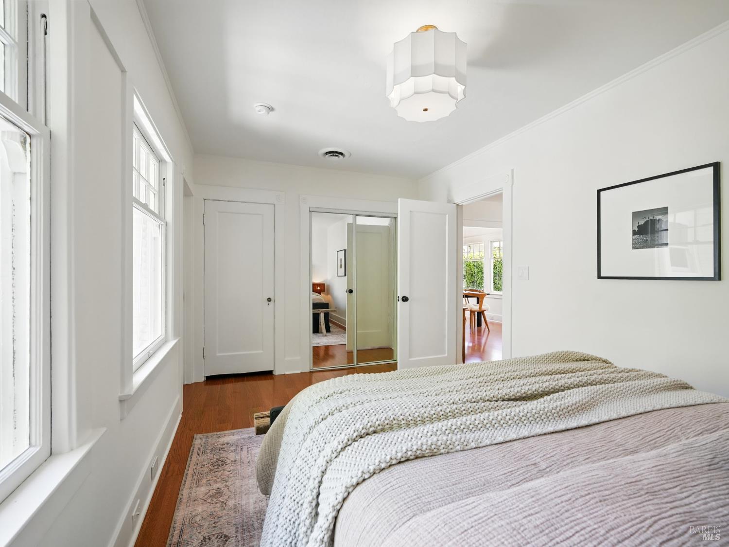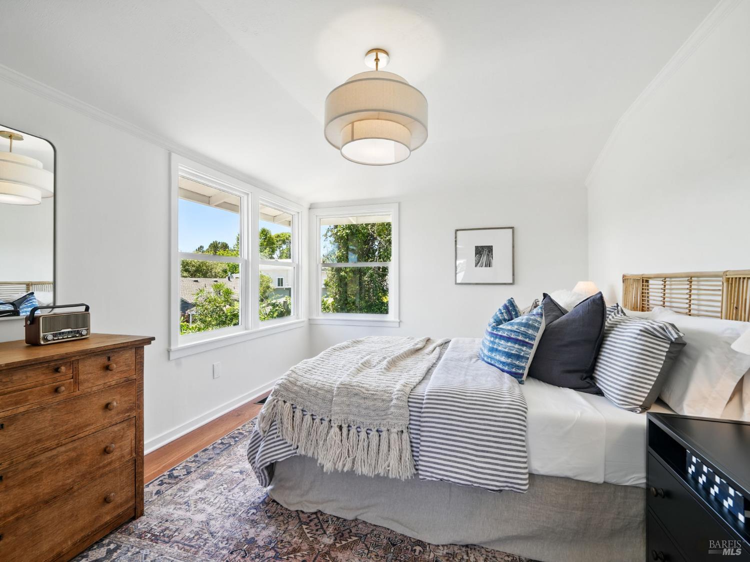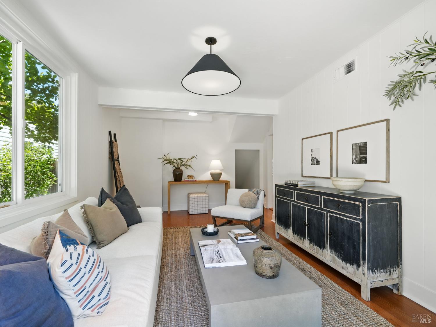 Discover this elegantly remodeled 1925 vintage charmer in San Rafael's desirable Outer Dominican neighborhood. This farmhouse-style home, infused with Spanish influences, offers historic charm and modern luxury across 1,655 square feet of thoughtfully designed space. It features 4 bedrooms and 2 beautifully renovated bathrooms. Period details captivate throughout. The updated kitchen boasts high-end finishes and authentic terracotta Spanish tiles, echoed in the cohesive bathroom designs. The main level flows from the kitchen to dining and living areas, with a separate family room, two bedrooms, and a bath. Upstairs, find the primary and another bedroom with a full bath. Your private oasis awaits with sunny front and back yards featuring native California landscaping, eliminating irrigation needs. The fully fenced backyard provides a serene retreat, while the front porch features custom encaustic cement tiles and a new picket railing. Additional features include a single-car garage, ample parking, all-new electrical systems, fresh paint, and designer lighting. Close to downtown San Rafael, this home blends nostalgic charm with contemporary elegance.